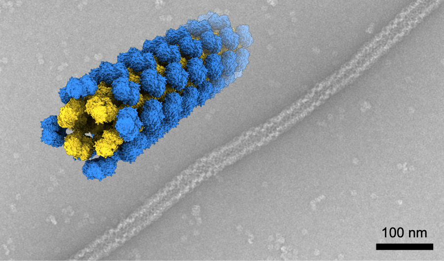 蛋白質は一般に、多数のアミノ酸が数珠のようにつながったポリペプチド鎖が自発的に折りたたまれて固有の立体構造をとることで形成され、生命現象を支える様々な機能を発揮します。アミノ酸配列レベルでの人為的な改変、あるいは全く新規のアミノ酸配列の生成により、望みの構造・機能をもった蛋白質の創生を目指すのが「蛋白質デザイン」という研究分野です。2024年のノーベル化学賞で注目されたように、近年では計算機科学を駆使したcomputationalな蛋白質デザイン手法が飛躍的に発展しており、蛋白質1分子のデザインに留まらず蛋白質高次集合体のデザインにも威力を発揮しています。しかしながら、蛋白質高次集合体のデザインにおいて、計算的手法が得意とするのは比較的硬く静的な構造であり、生体内に存在するような柔軟で動的な高次構造の創生は挑戦的な課題でした。今回の論文で、我々はデザインした2種類の蛋白質を組み合わせることで、細胞骨格のような柔軟で動的な性質を示す秩序的なチューブ構造の創生に成功したことを報告しています。蛋白質のみからなる複数成分の人工チューブ構造の創生は、我々の知る限り初めて達成された成果です。また、我々のデザインのベースにあるのは、天然に存在する蛋白質の性質を最大限に活かすという「直感的デザイン」の手法であり、これにより計算的手法によるデザインとは一線を画す性質の高次集合体の創生に至ったと考えています。
